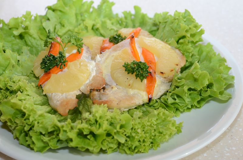 Свинина, запеченная с грибами и сыром (100 гр.)